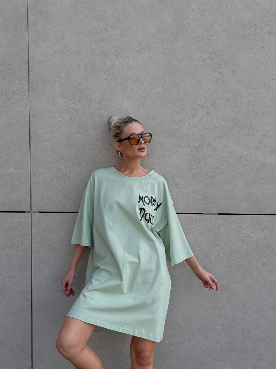 Футболка-платье oversize с принтом Дональд Дак фисташка