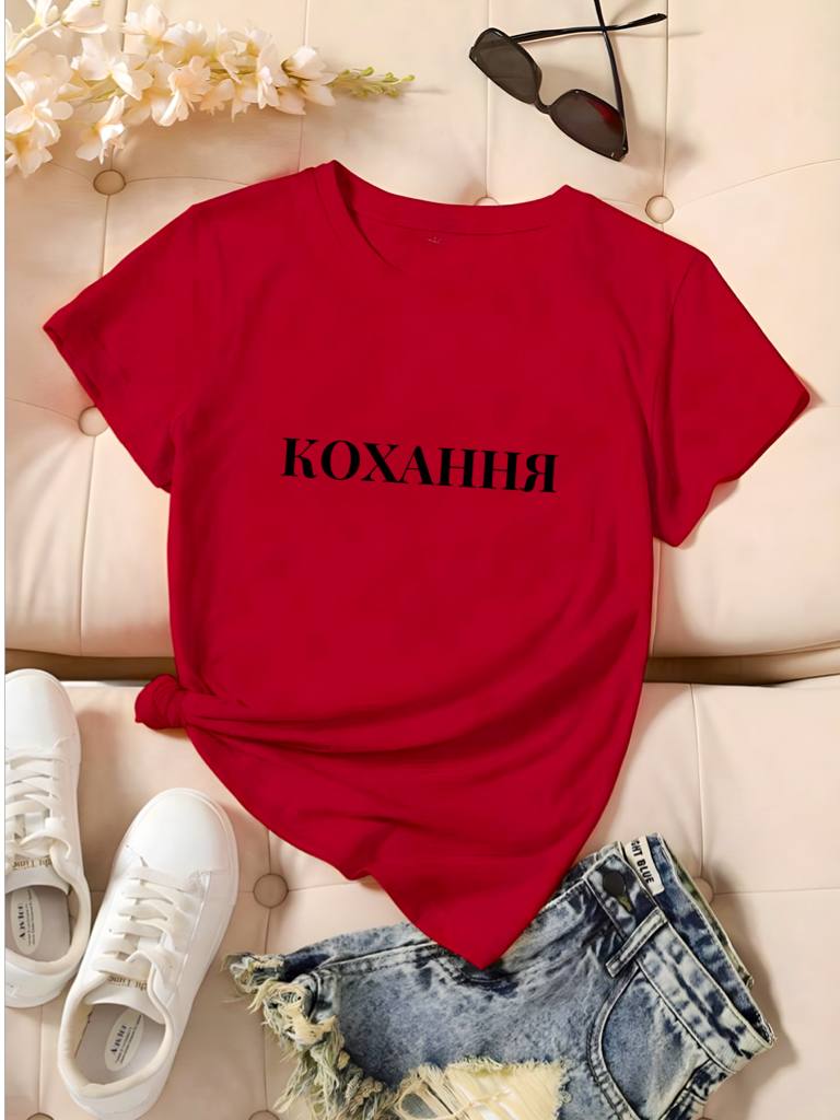 Головна » Магазин » Одяг » T -сорочки Майкі » Футболка с коротким рукавом+надписью хлопок красный
