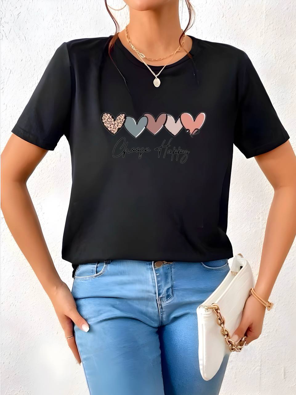 Головна » Магазин » Одяг » T -сорочки Майкі » Футболка с коротким рукавом+накатом СЕРДЕЧКИ хлопок черный