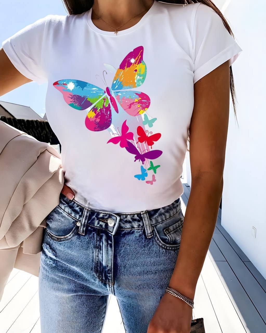 Головна » Магазин » Одяг » T -сорочки Майкі » Футболка с ярким накатом БАБОЧКИ софт+вискоза белый