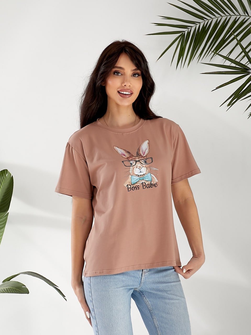 Будьте першим, хто залишив відгук “Футболка с забавным принтом в очках RABBIT мокко”“