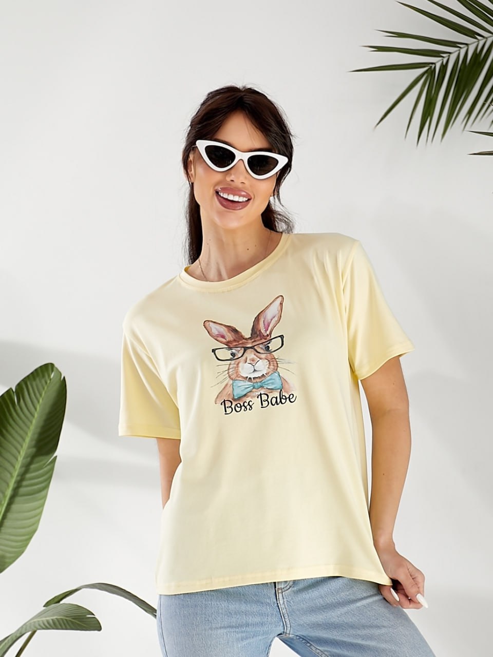 Футболка с забавным принтом в очках. Свободный крой, приятная на ощупь ткань, идеальная для повседневного образа.