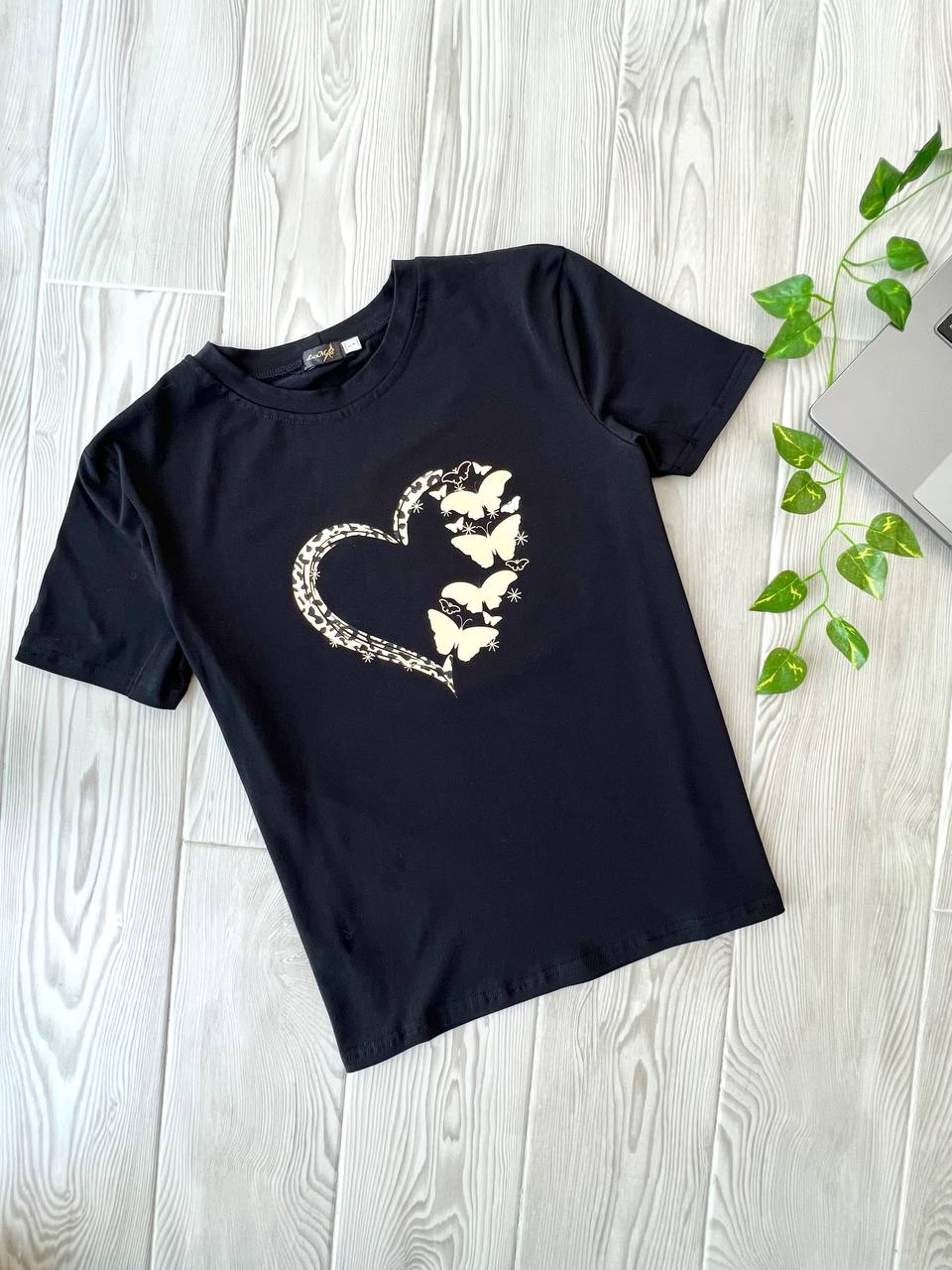 Головна » Магазин » Одяг » T -сорочки Майкі » Футболка женская сердце с бабочками черный