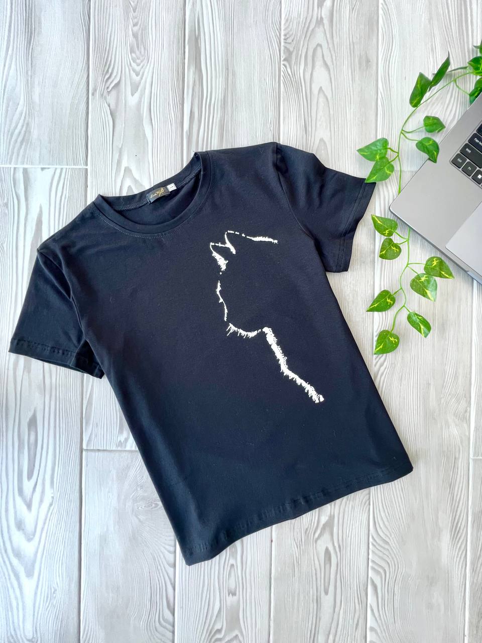 Головна » Магазин » Одяг » T -сорочки Майкі » Футболка женская силуэт Кота черный