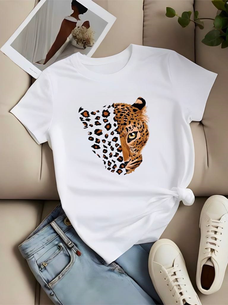 Идеальная футболка на лето с ярким накатом ТИГР белый