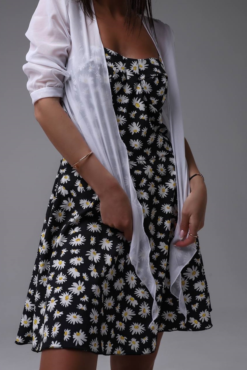 Сарафан с застежкой-молнией сзади. Симпатичный цветочный принт, как на фото.