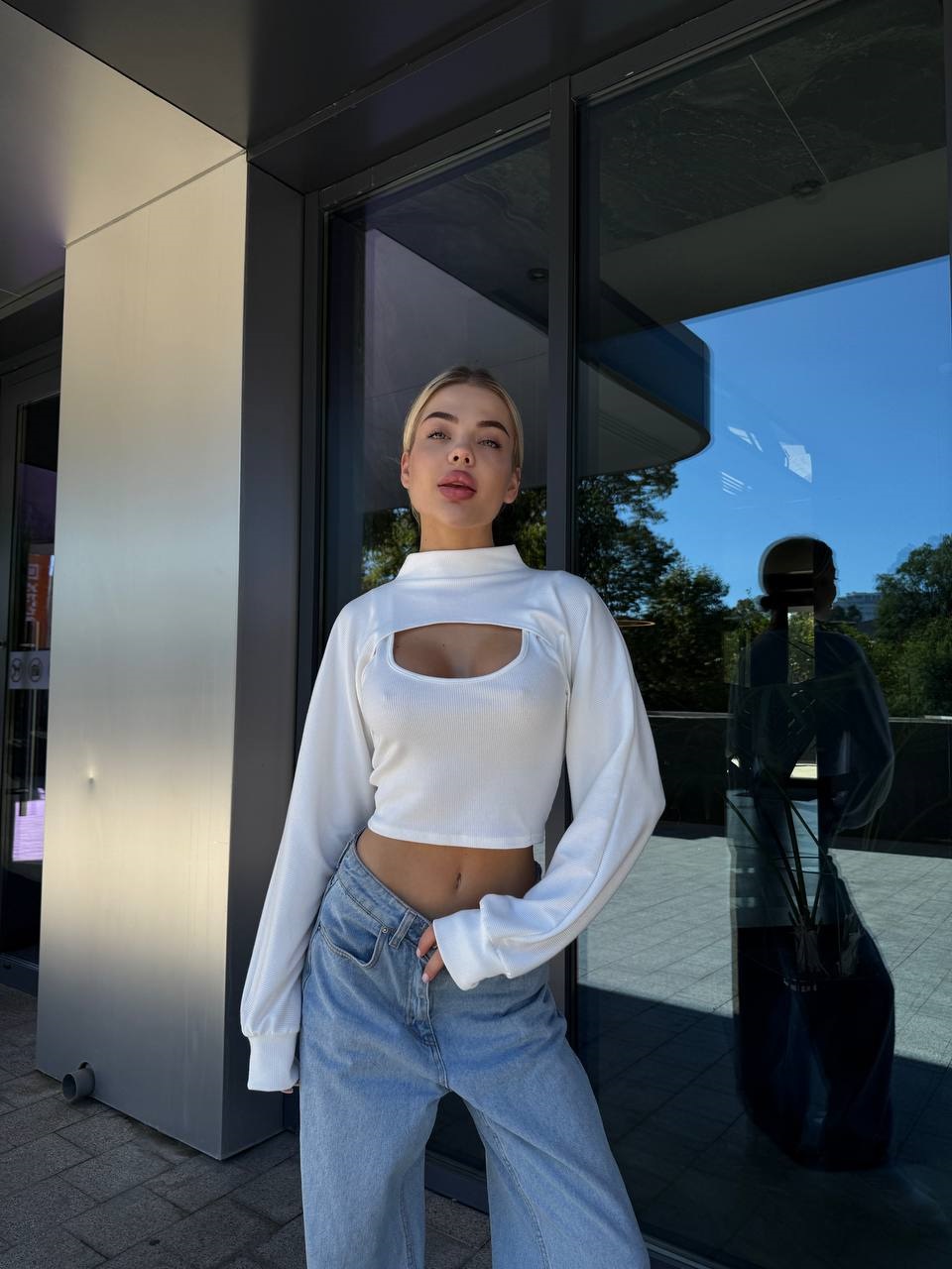 Интересный комплект из двух укороченных отдельных частей (топ+майка) молочный
