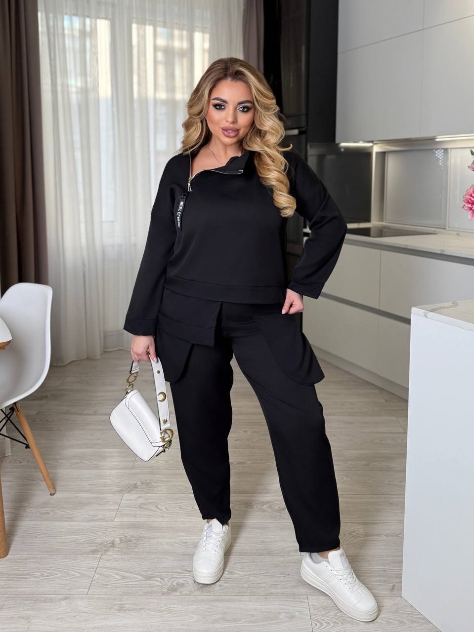 ▫️Костюм-двойка из креп костюмки, интересного кроя. Брюки на резинке, два красивых кармана, выполнены из крепшифона,