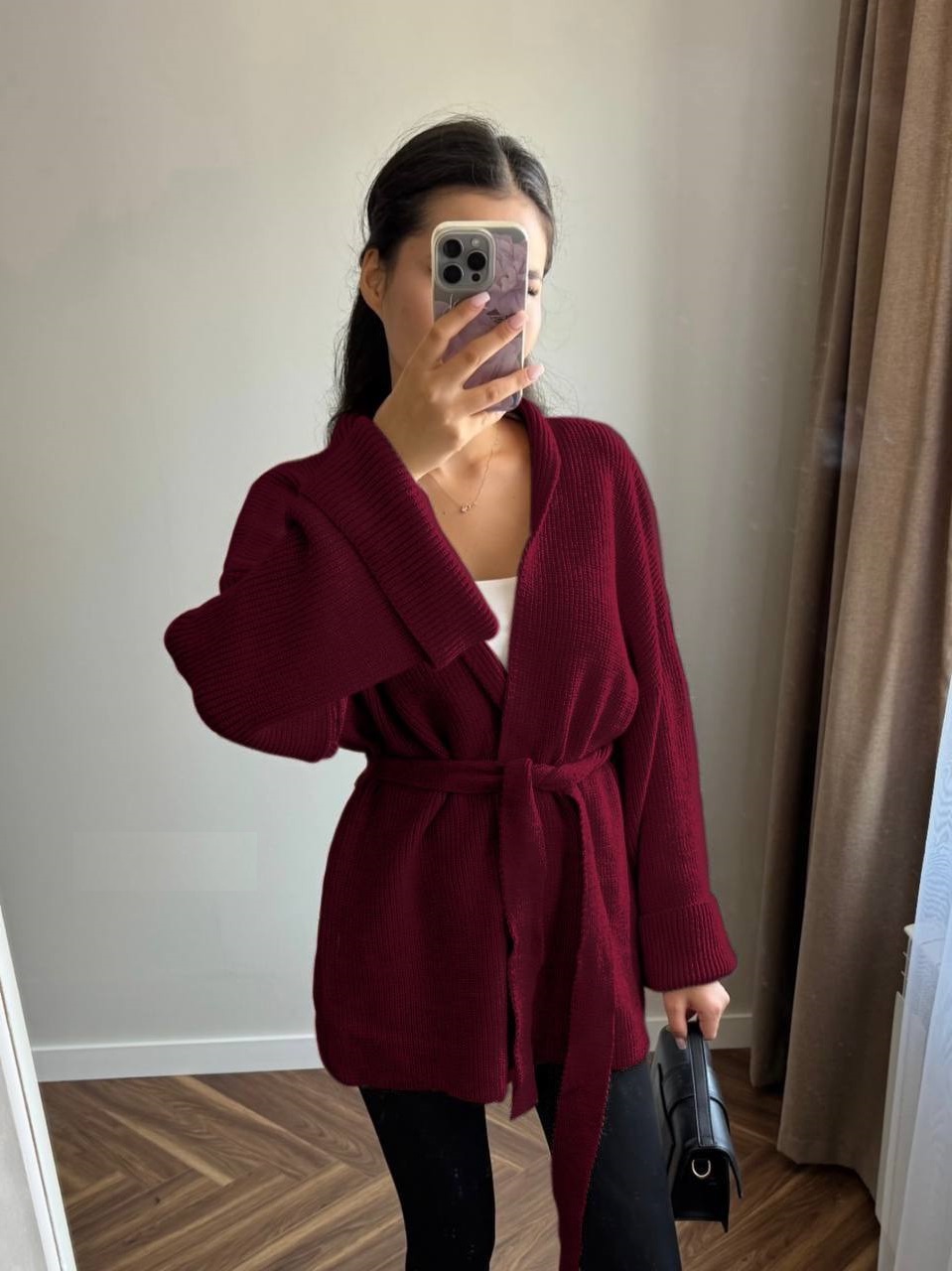 Головна » Магазин » Одяг » Кардигани » Кардиган на запах под пояс ангора бордо