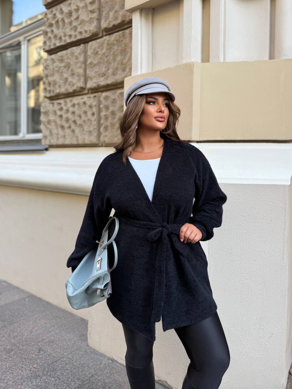 Кардиган с длинным широким рукавом (ангора «травка») черный