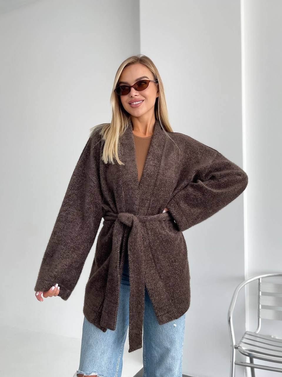 Кардиган с поясом (пушистая ангора «травка») шоколад