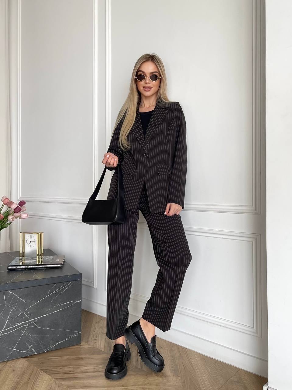Классический костюм в полоску (пиджак с плечиками+брюки) черный