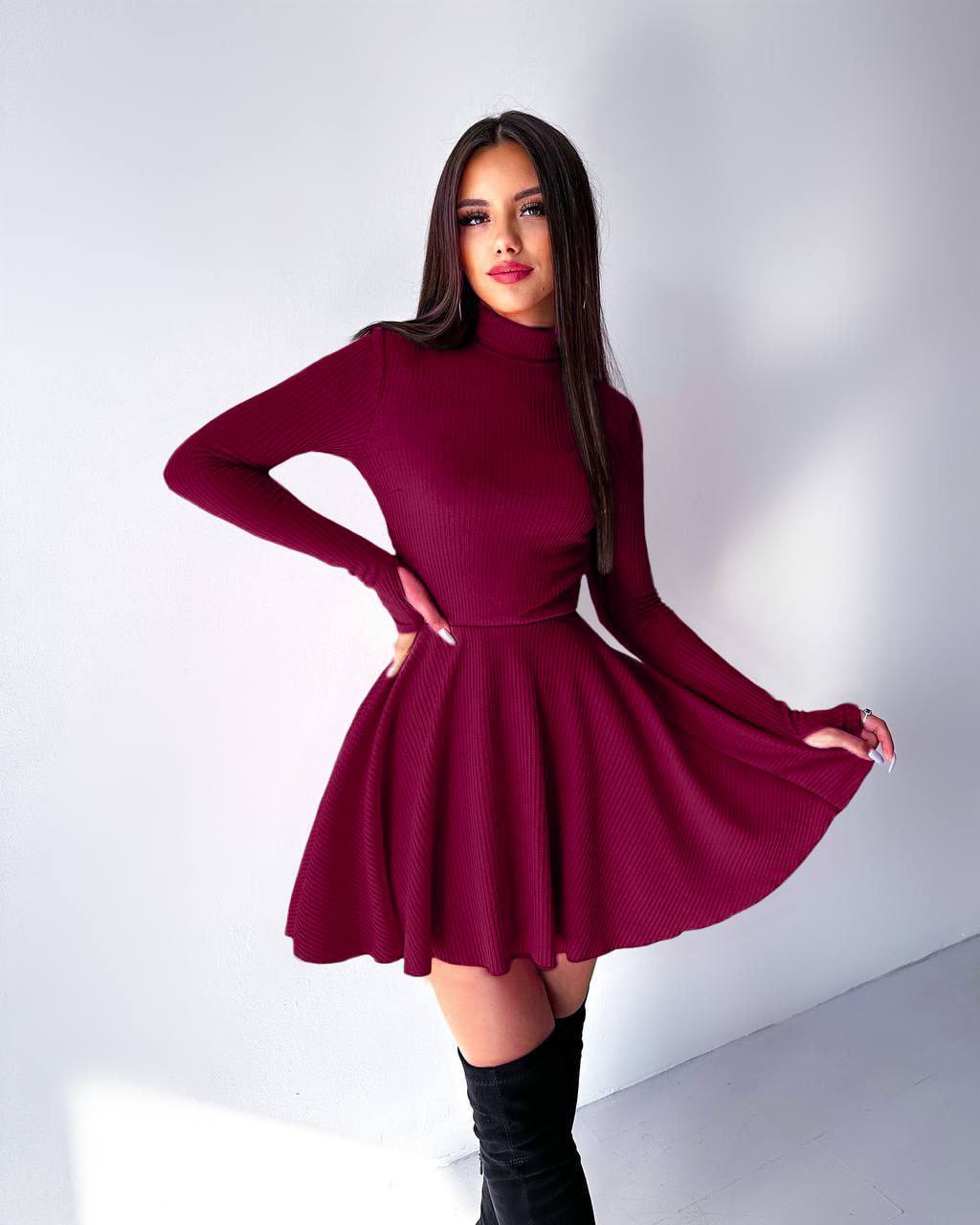 Классическое платье в гольф. Рукава с вырезом под пальчик. Горловину можно подвернуть. Пышная юбочка-солнце.