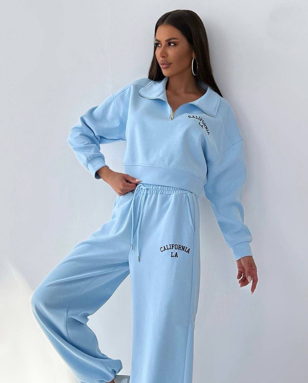 Головна » Магазин » Одяг » Жіночі спортивні костюми » Классный модный спортивный костюм кофта+штаны двухнить голубой
