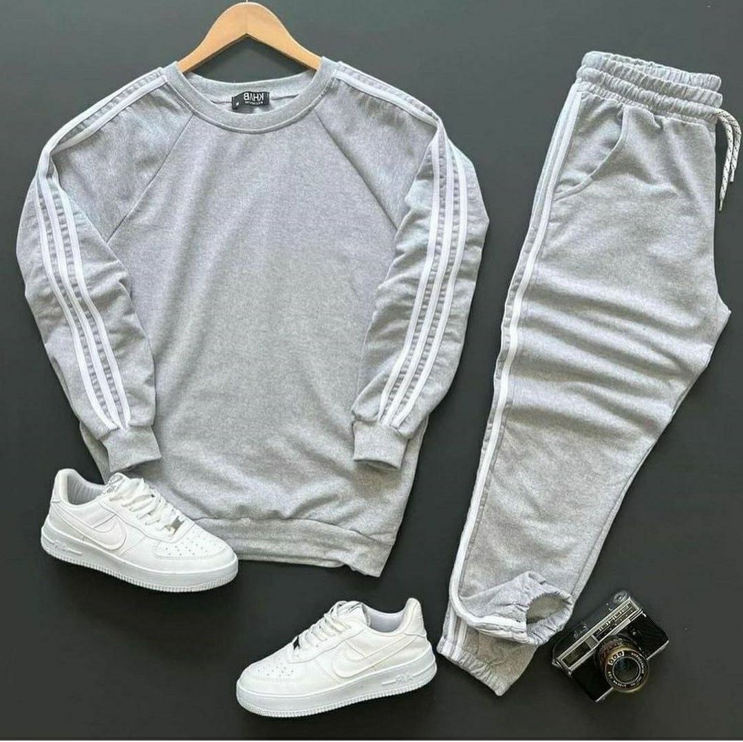 Головна » Магазин » Одяг » Чоловічі костюми » Классный мужской костюм с лампасами (кофта с рукавом реглан+брюки) серый