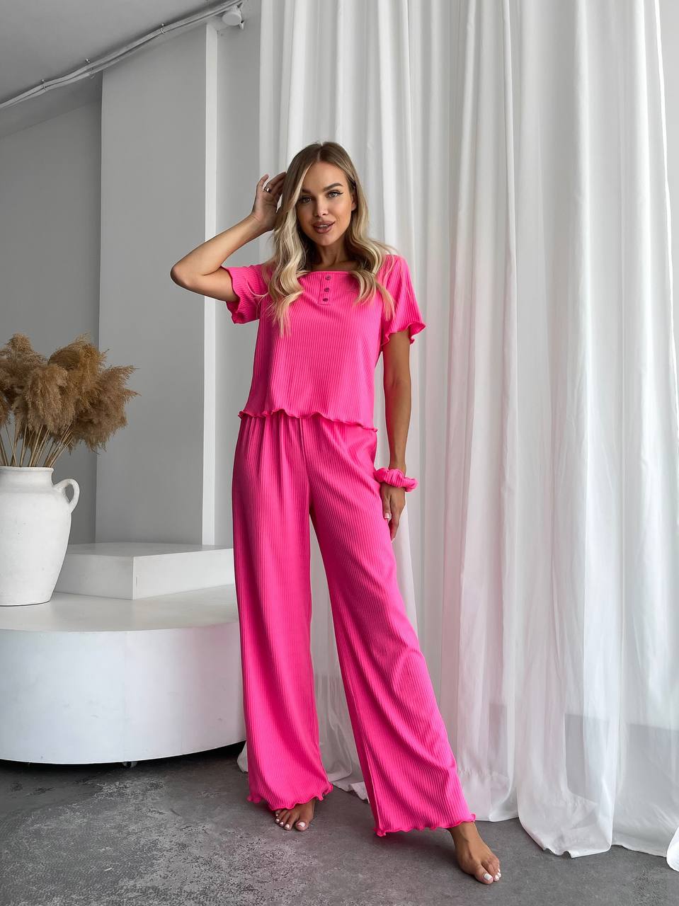 Будьте першим, хто залишив відгук “Класссный Костюм-тройка (топ+штаны+резинка) трикотаж рубчик малиновый”“