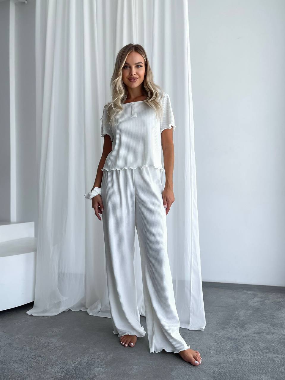 Будьте першим, хто залишив відгук “Класссный Костюм-тройка (топ+штаны+резинка) трикотаж рубчик молочный”“