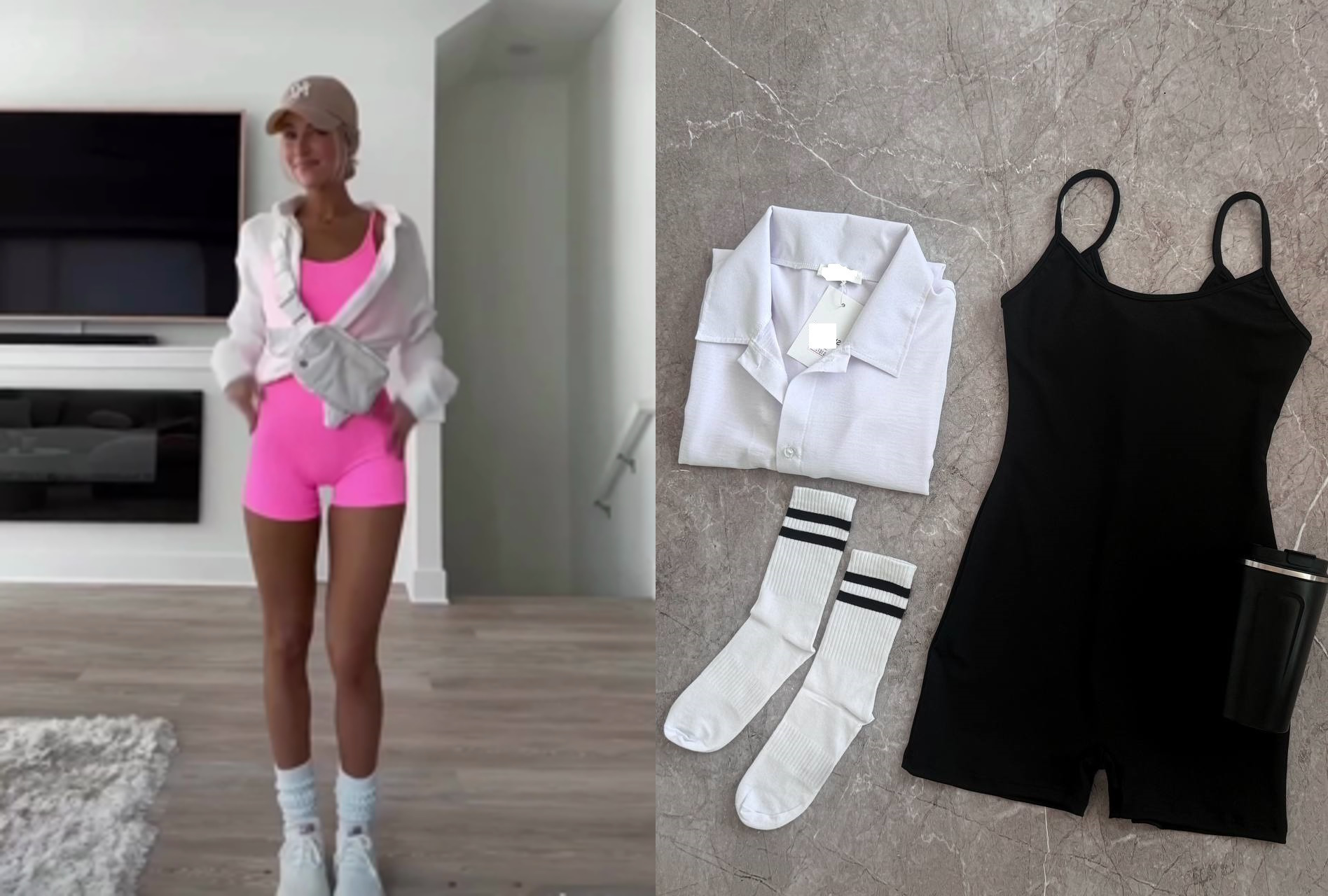 Классый топ комплект (рубашка с длинным рукавом+комбинезон на тонких бретелях) черный+белый