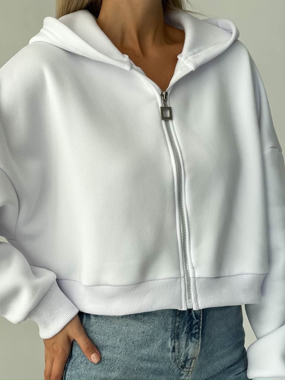 Кофта с принтом на спине трехнитка на флисе манжеты рибана белый
