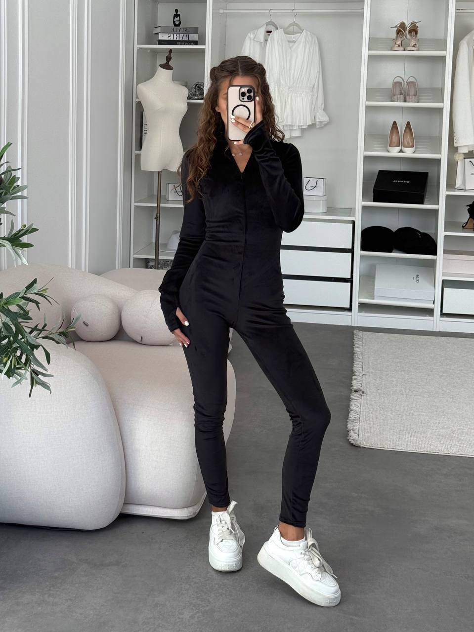 Комбез велюровый на молнии черный