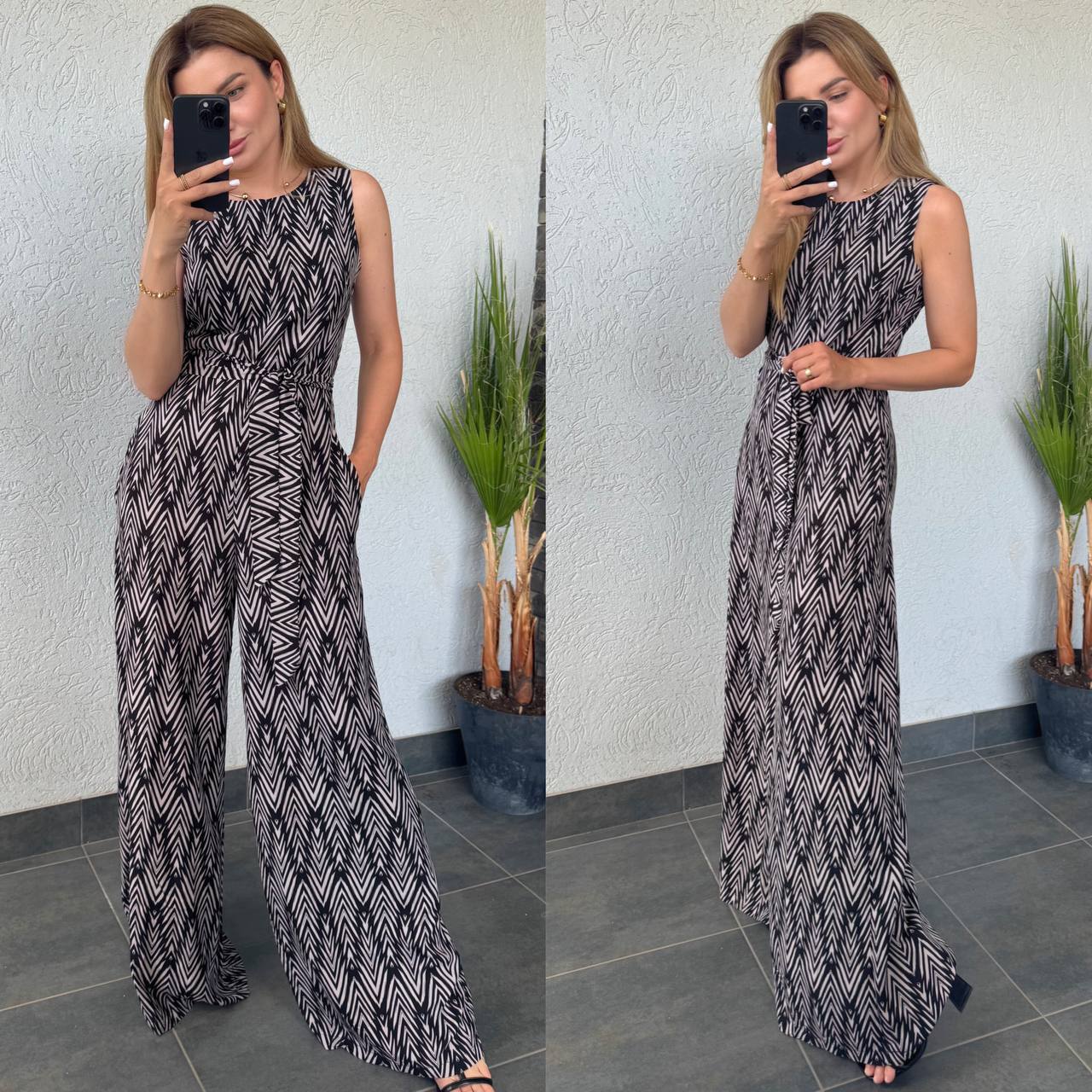 Комбинезон с широкими брюками кюлотами, сзади тайная молния, в боковых швах есть карманы