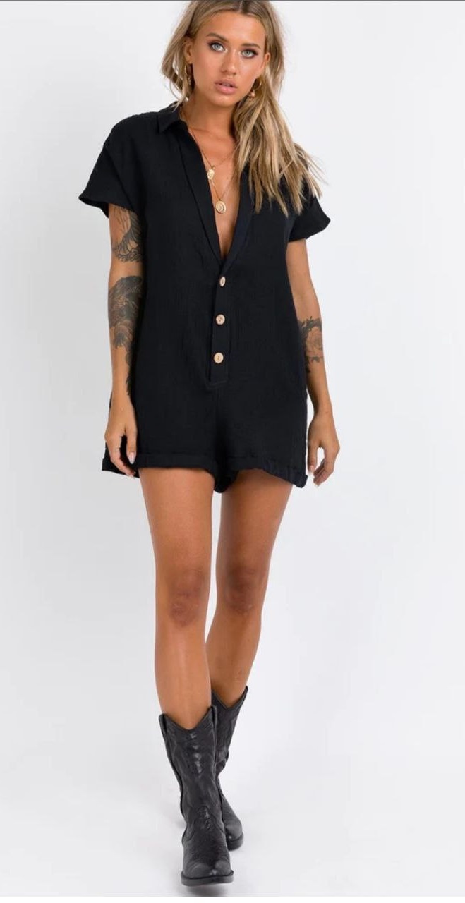 Головна » Магазин » Одяг » Комбінезон » Комбинезон свободного кроя на пуговицах с глубоким V-образным вырезом черный