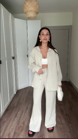 Комфортный костюм свободного кроя (брюки+рубашка) лен светло-бежевый