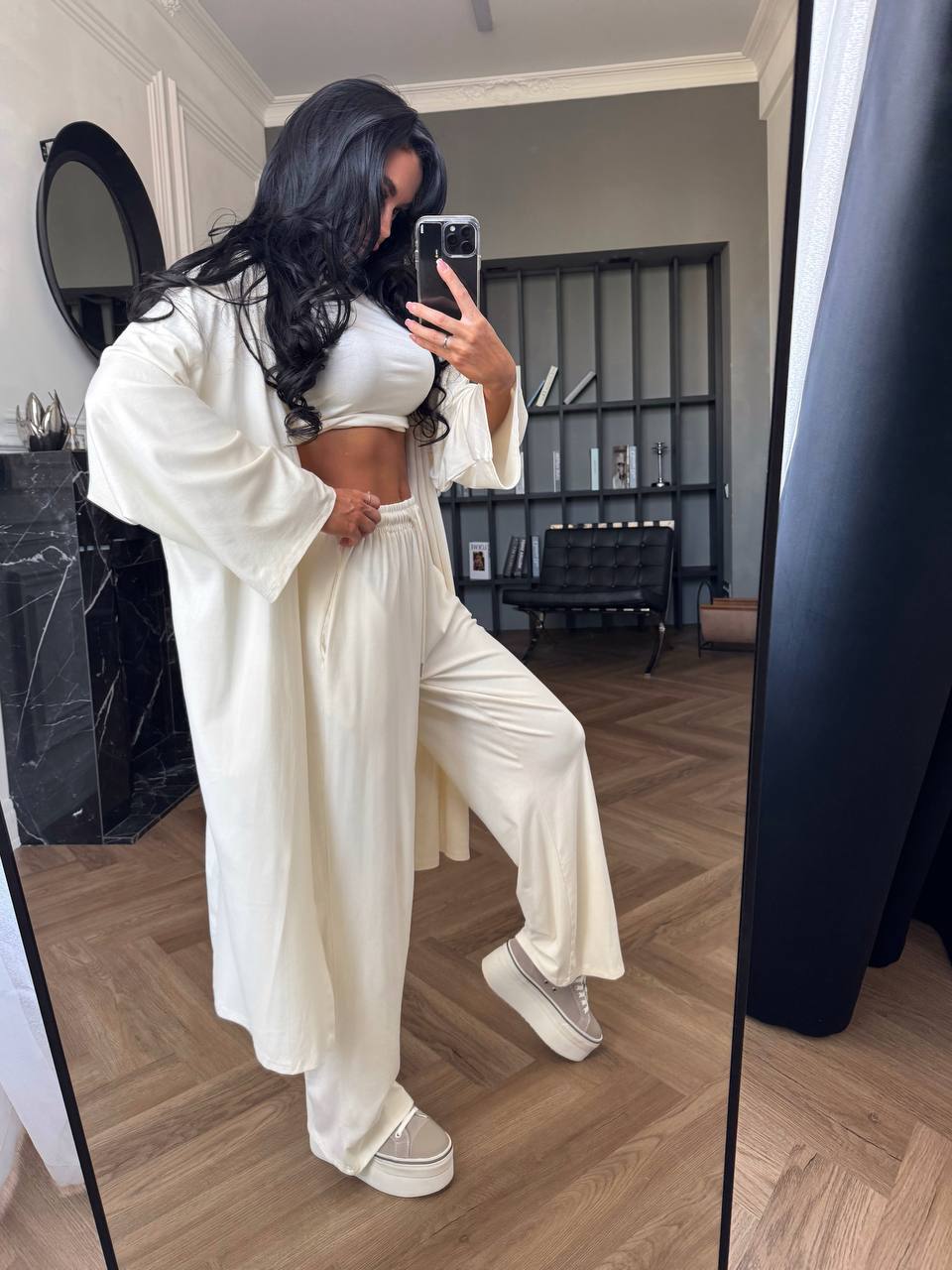 Будьте першим, хто залишив відгук “Комплект 3-ка: Кардиган з брючками + топ айвори”“