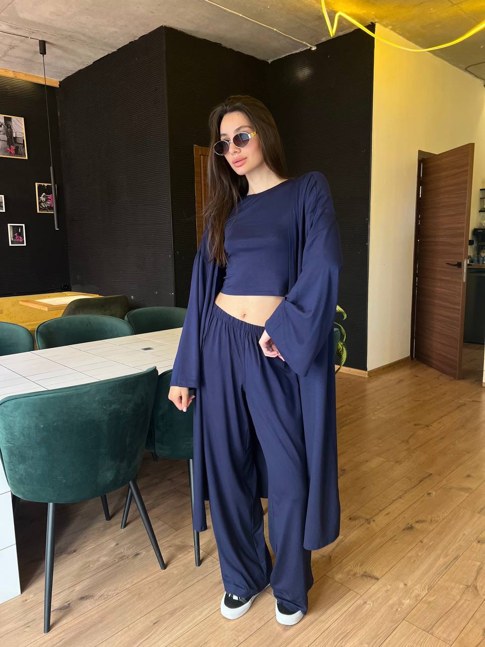 Будьте першим, хто залишив відгук “Комплект 3в1 (кимоно+футболка+брюки палаццо) темно-синий”“