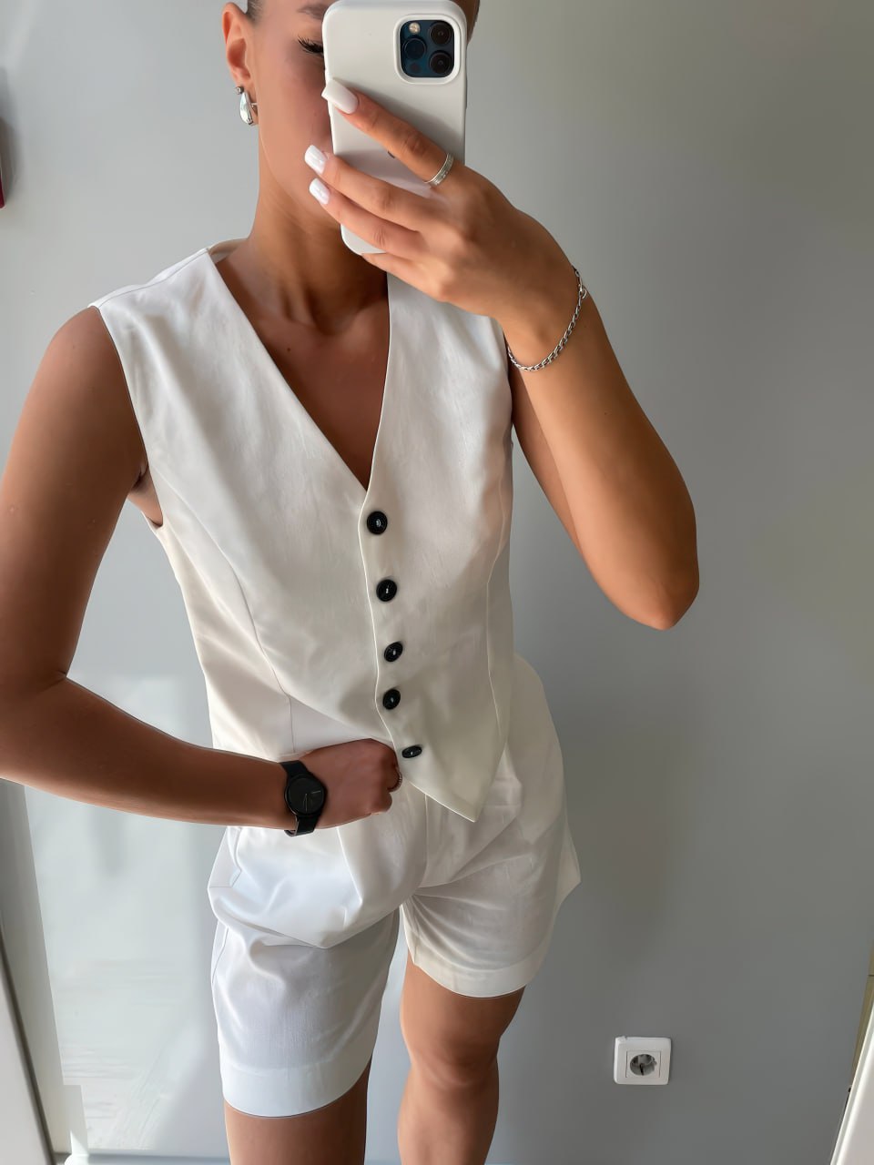 Комплект для лета: Приталенный жилет на пуговицах+базовые шорты белый
