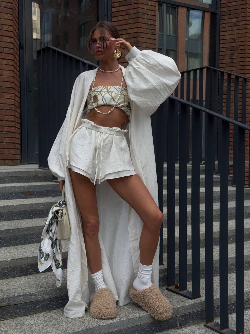 Будьте першим, хто залишив відгук “Комплект двойные шорты и кардиган с поясом молочный”“