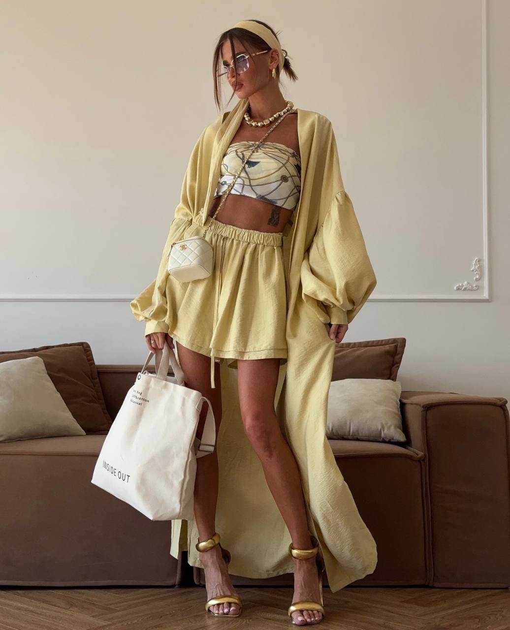 Будьте першим, хто залишив відгук “Комплект двойные шорты и кардиган с поясом банан”“