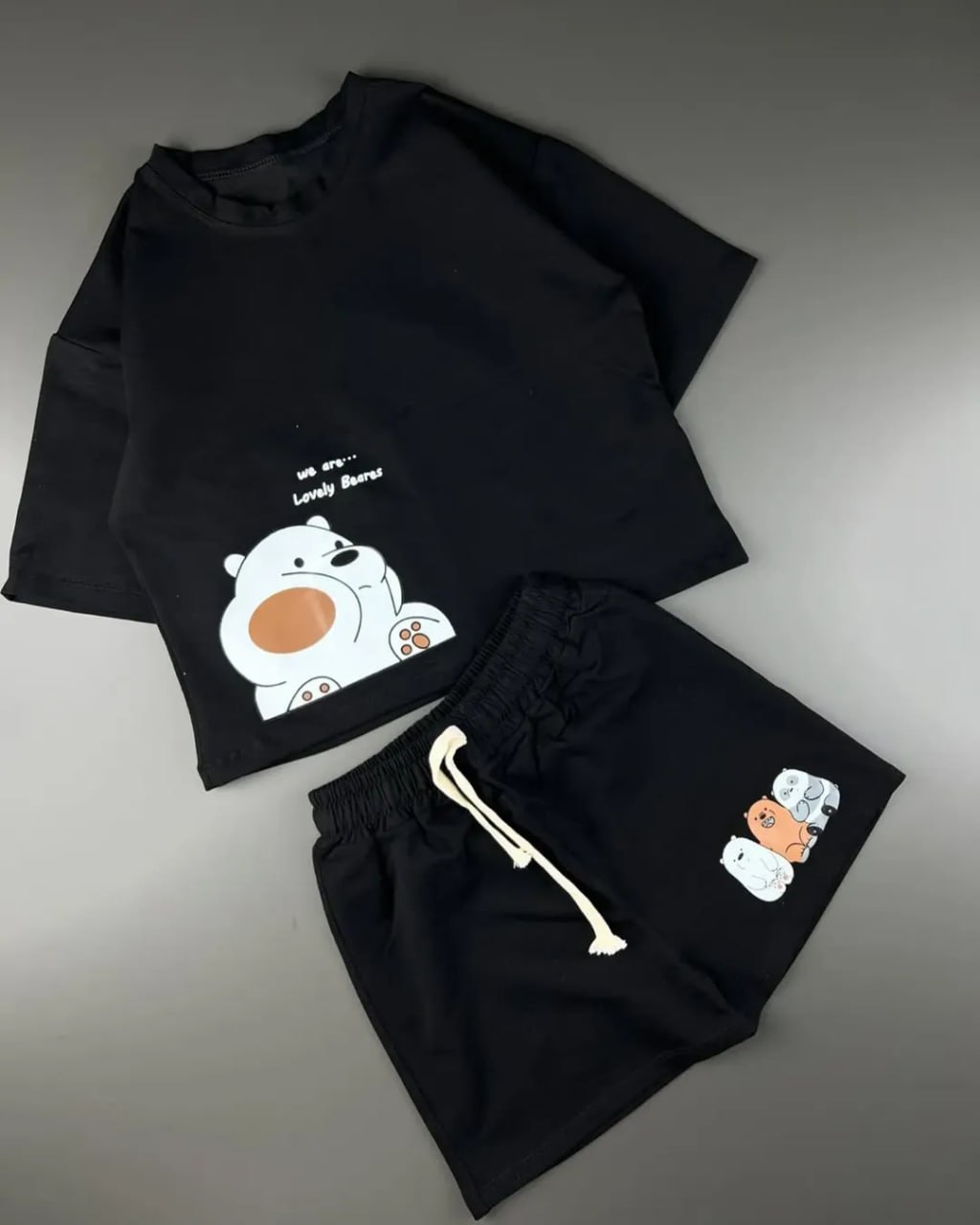 Будьте першим, хто залишив відгук “Комплект из двухнитки (футболка oversize+шорты на эластичном поясе с удобными завязками) черный”“