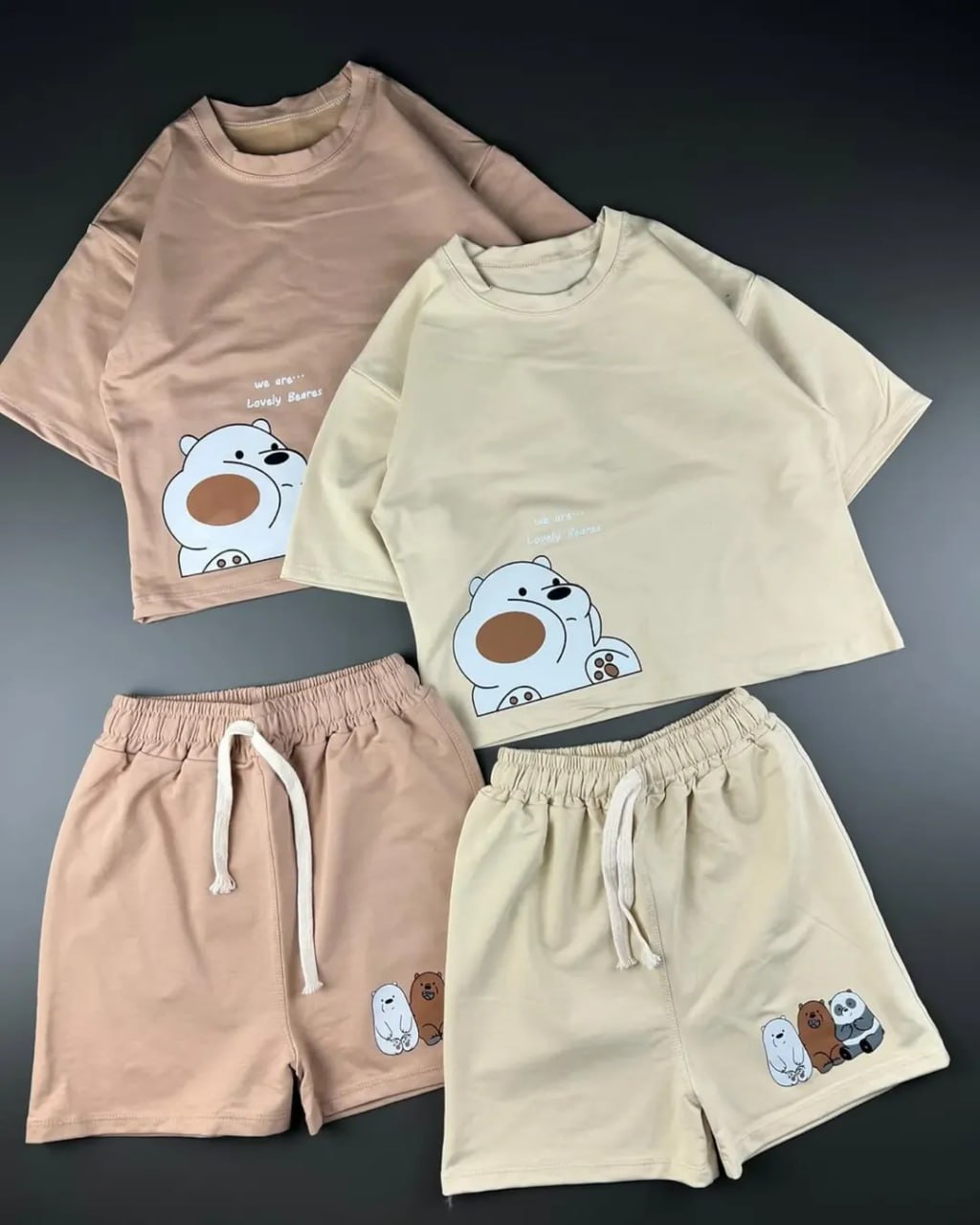Будьте першим, хто залишив відгук “Комплект из двухнитки (футболка oversize+шорты на эластичном поясе с удобными завязками) бежевый”“