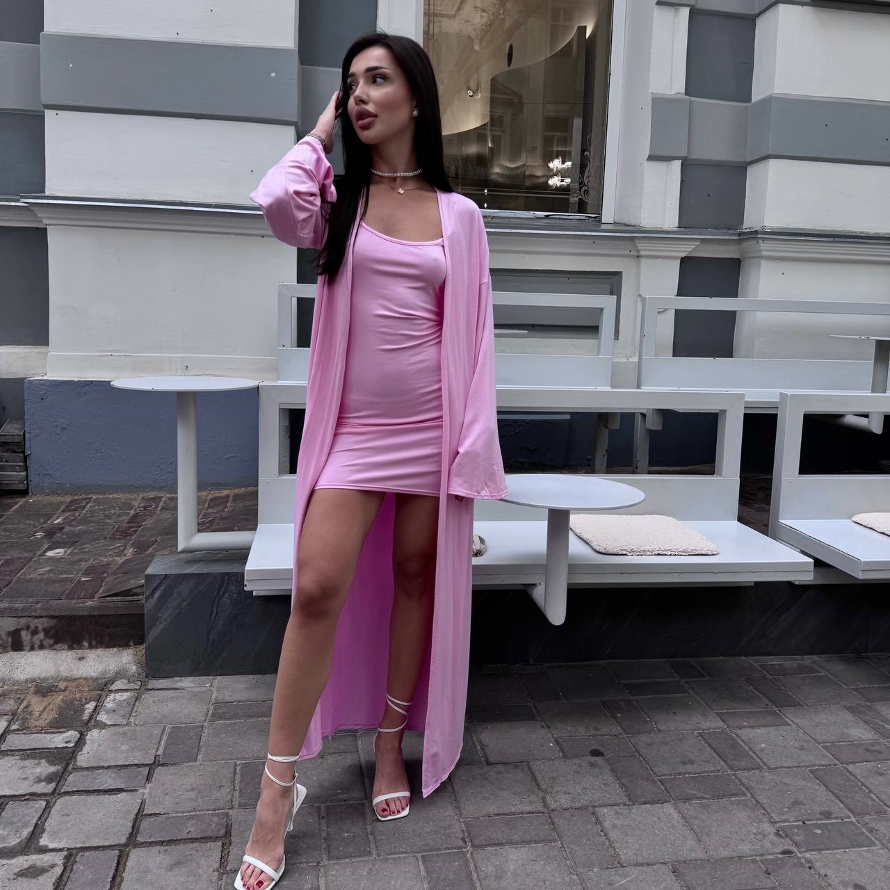 Комплект из вискозы (длинный кардиган+мини платье прямого кроя) барби