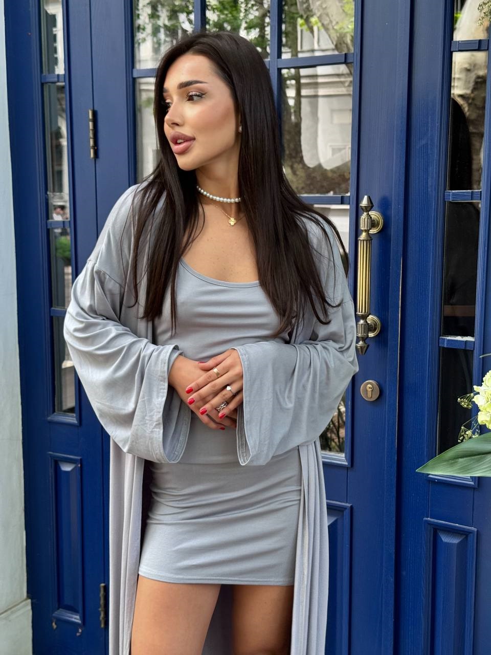 Комплект из вискозы (длинный кардиган+мини платье прямого кроя) серый