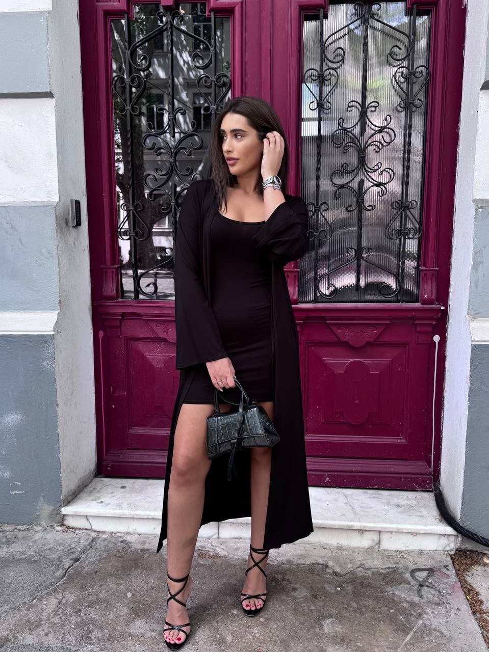 Комплект из вискозы (длинный кардиган+мини платье прямого кроя) черный