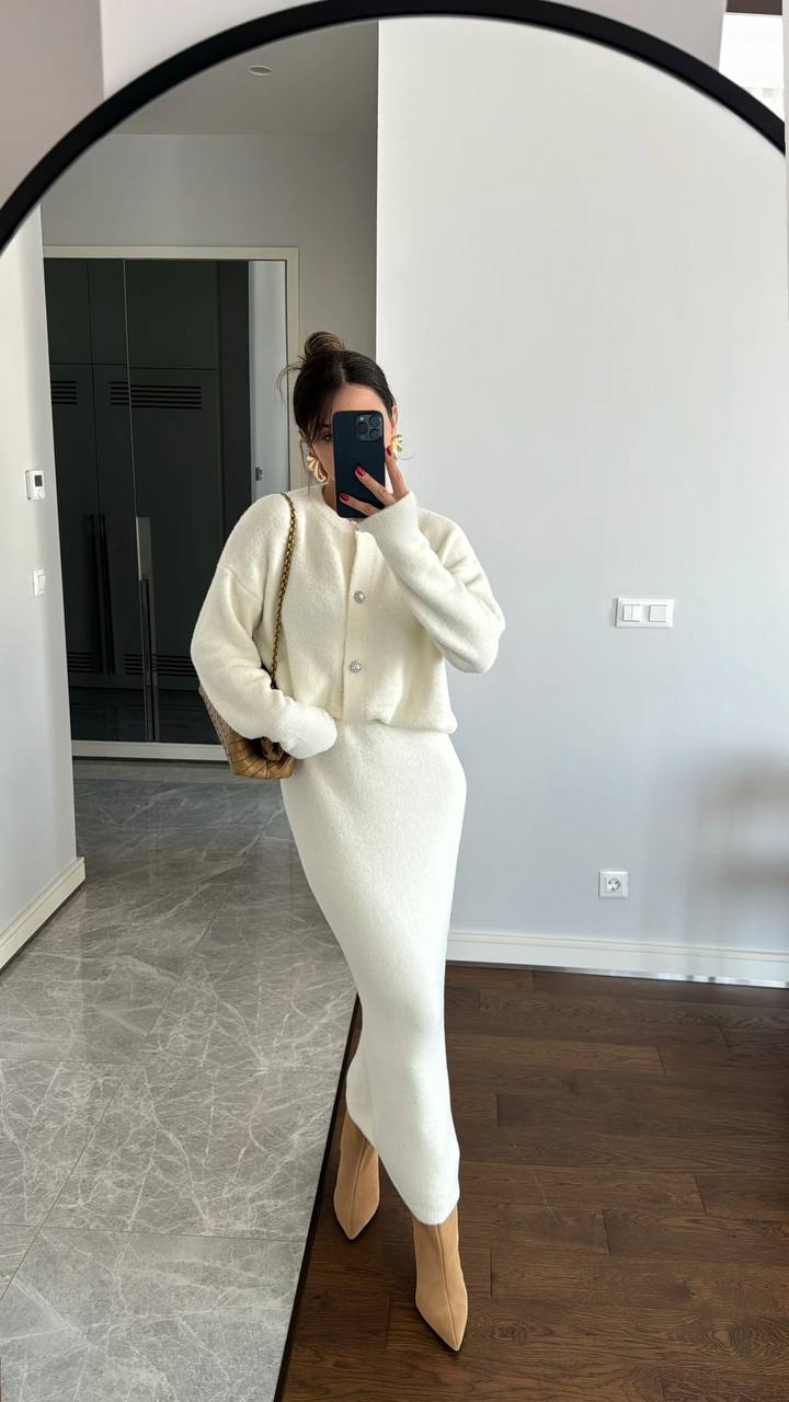 Будьте першим, хто залишив відгук “Комплект кофта с застежкой на пуговицы+юбка меди суженная к низу молоко”“