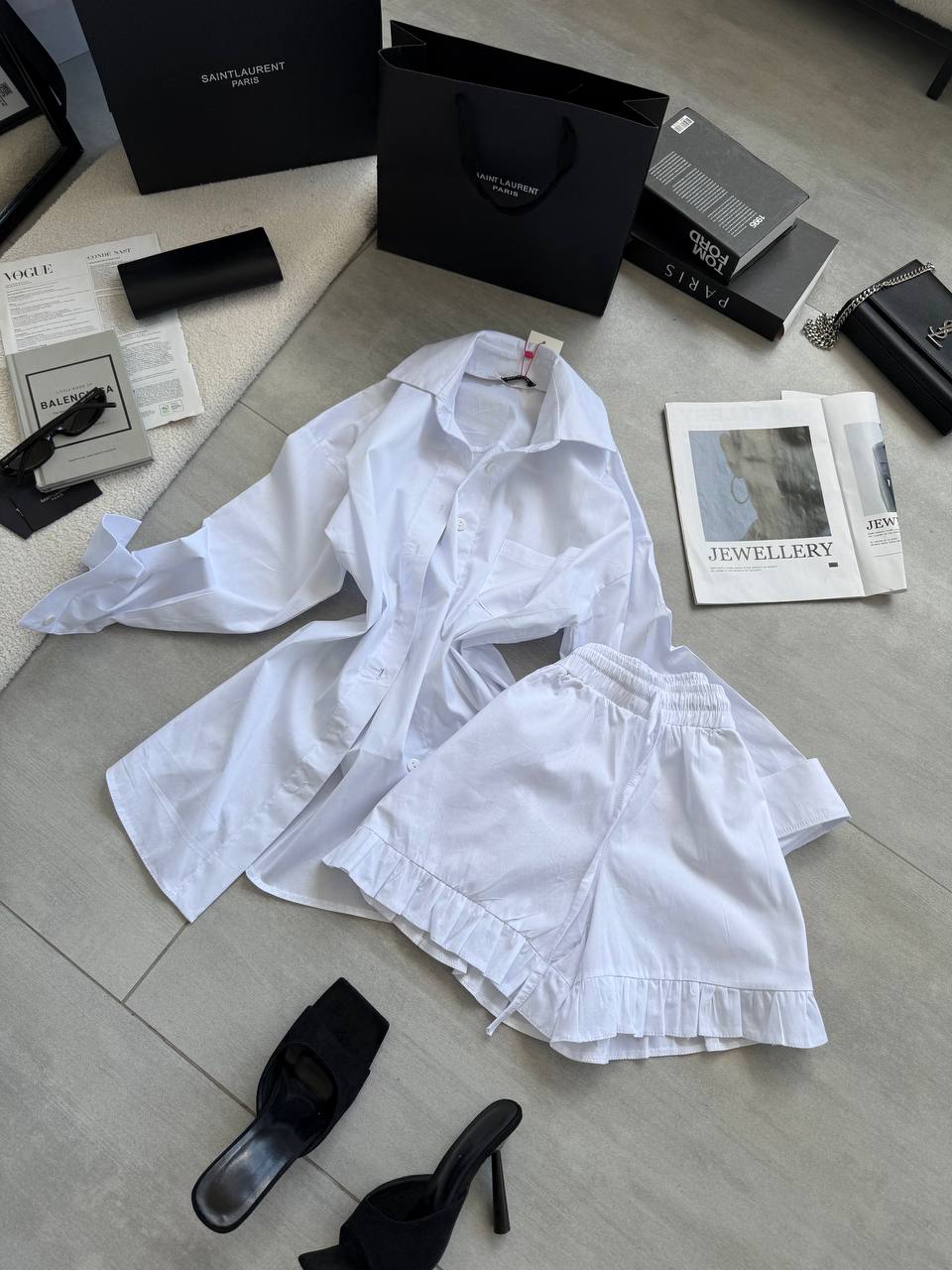 Будьте першим, хто залишив відгук “Комплект повседневный рубашка и шорты с рюшами белый”“