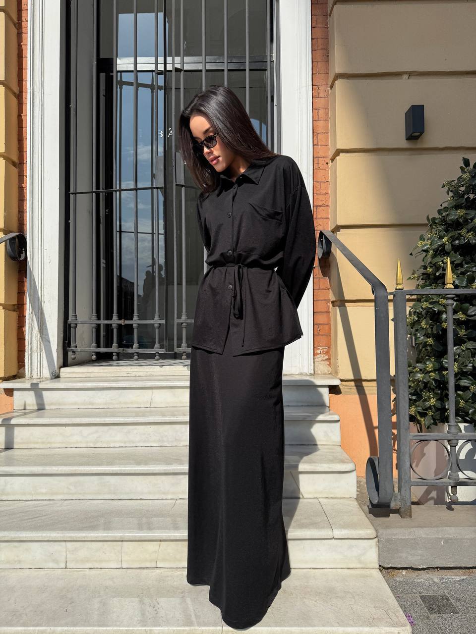 Комплект рубашка свободного кроя с объемными рукавами+юбочка на потайной молнии черный