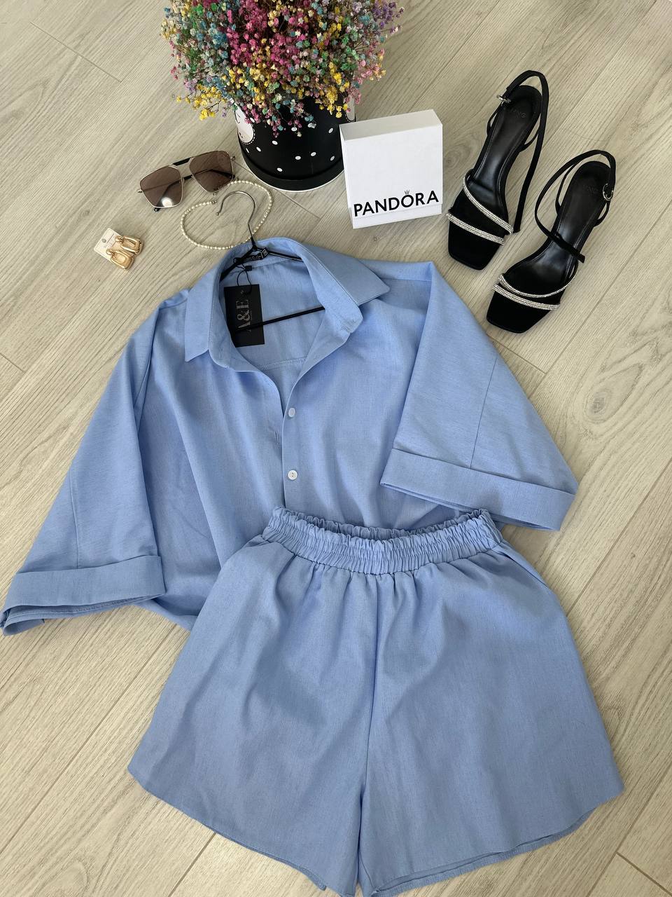 Будьте першим, хто залишив відгук “Комплект: свободная рубашка с воротником и укороченные шорты голубой”“