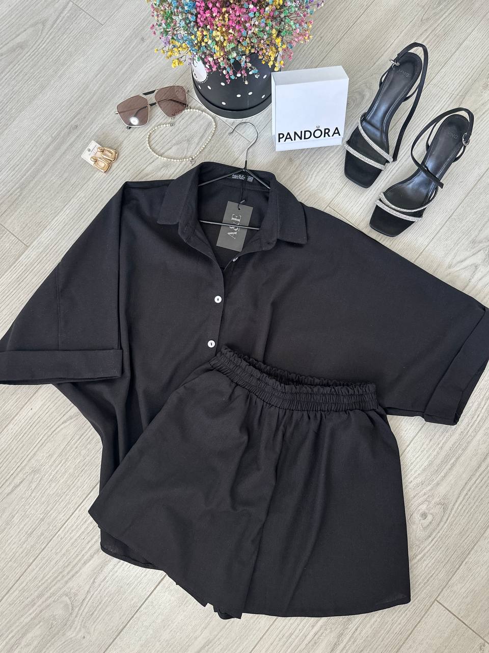 Будьте першим, хто залишив відгук “Комплект: свободная рубашка с воротником и укороченные шорты черный”“