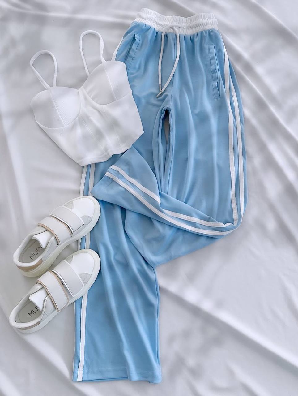 Комплект: Топ-корсет+штаны с лампасами голубой