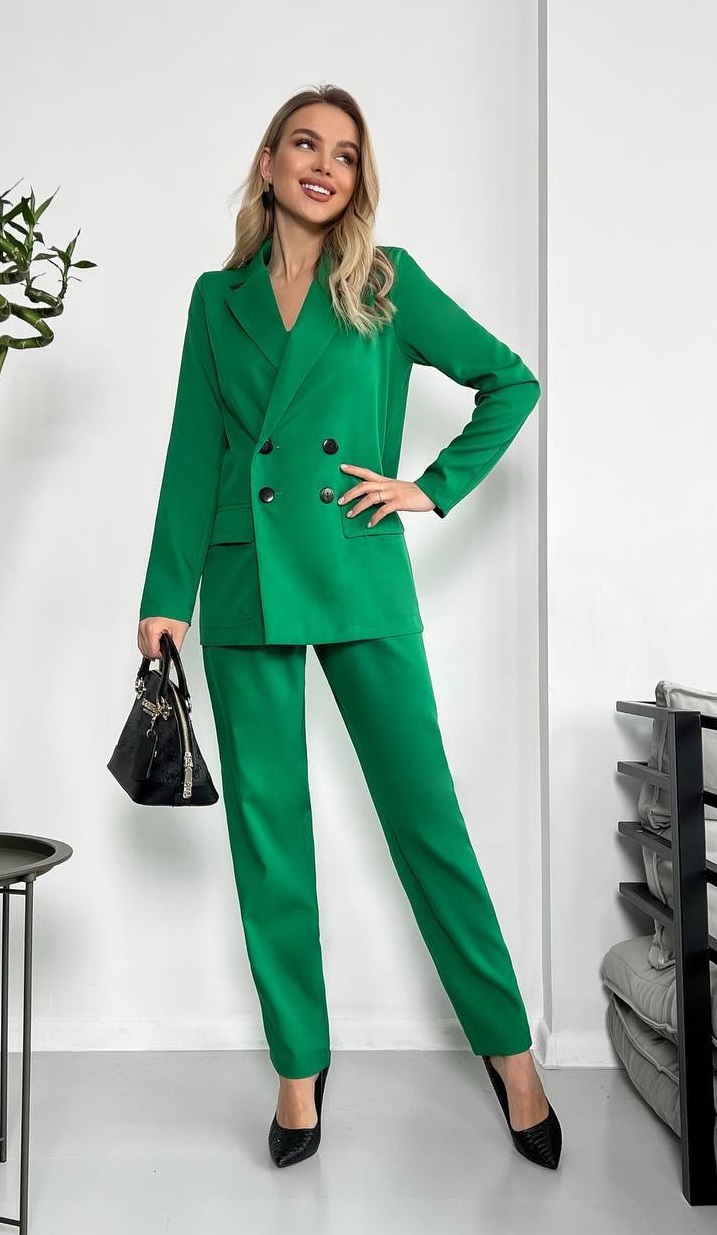 Комплект-тройка пиджак с плечиками+брюки+топ зеленый