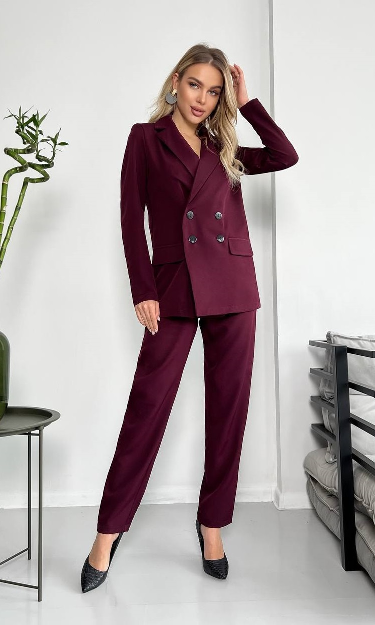 Комплект-тройка пиджак с плечиками+брюки+топ марсал