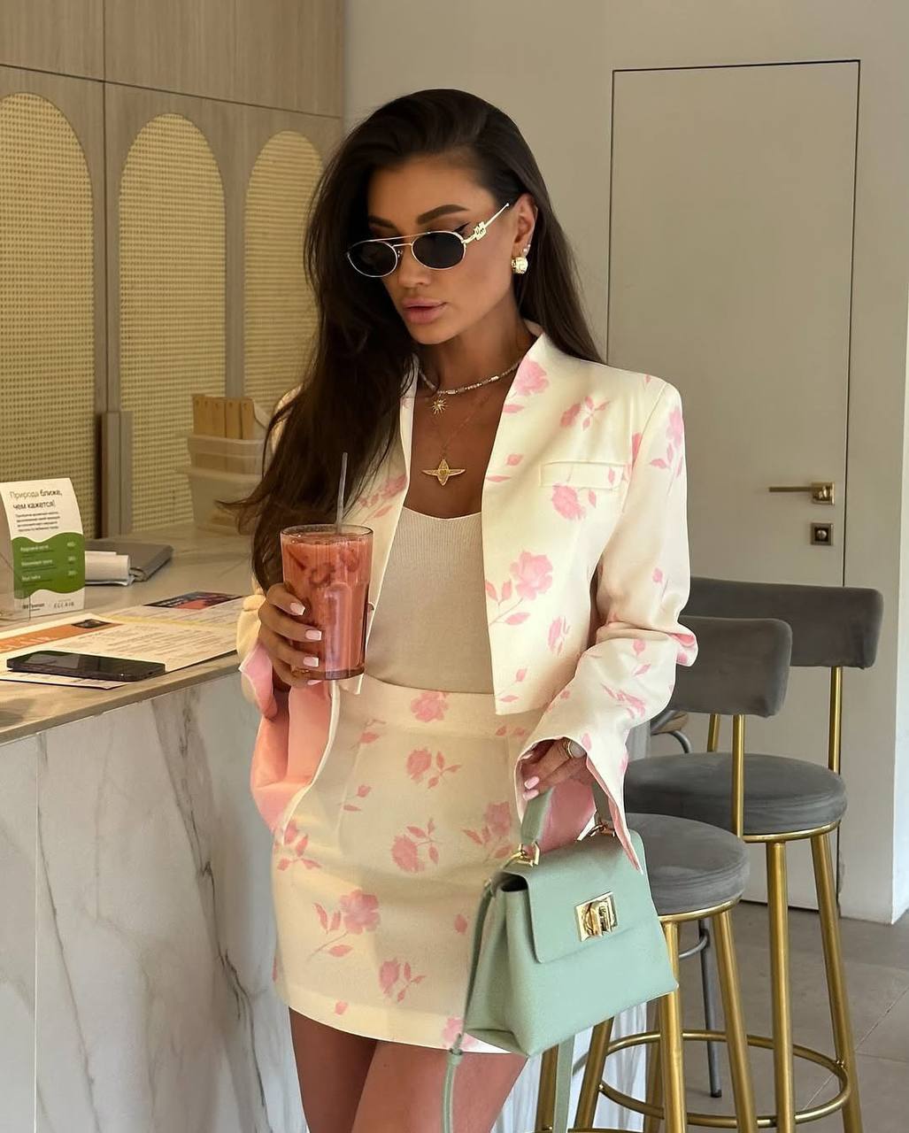 Жакет и юбка с цветочным принтом – это воплощение женственности.