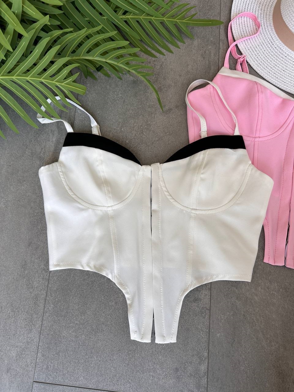 Корсет на бретелях (регулируются) спереди на крючках молочный