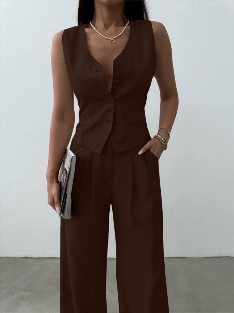 Костюм 2-ка: брюки средней посадки с карманами и жилет шоколад