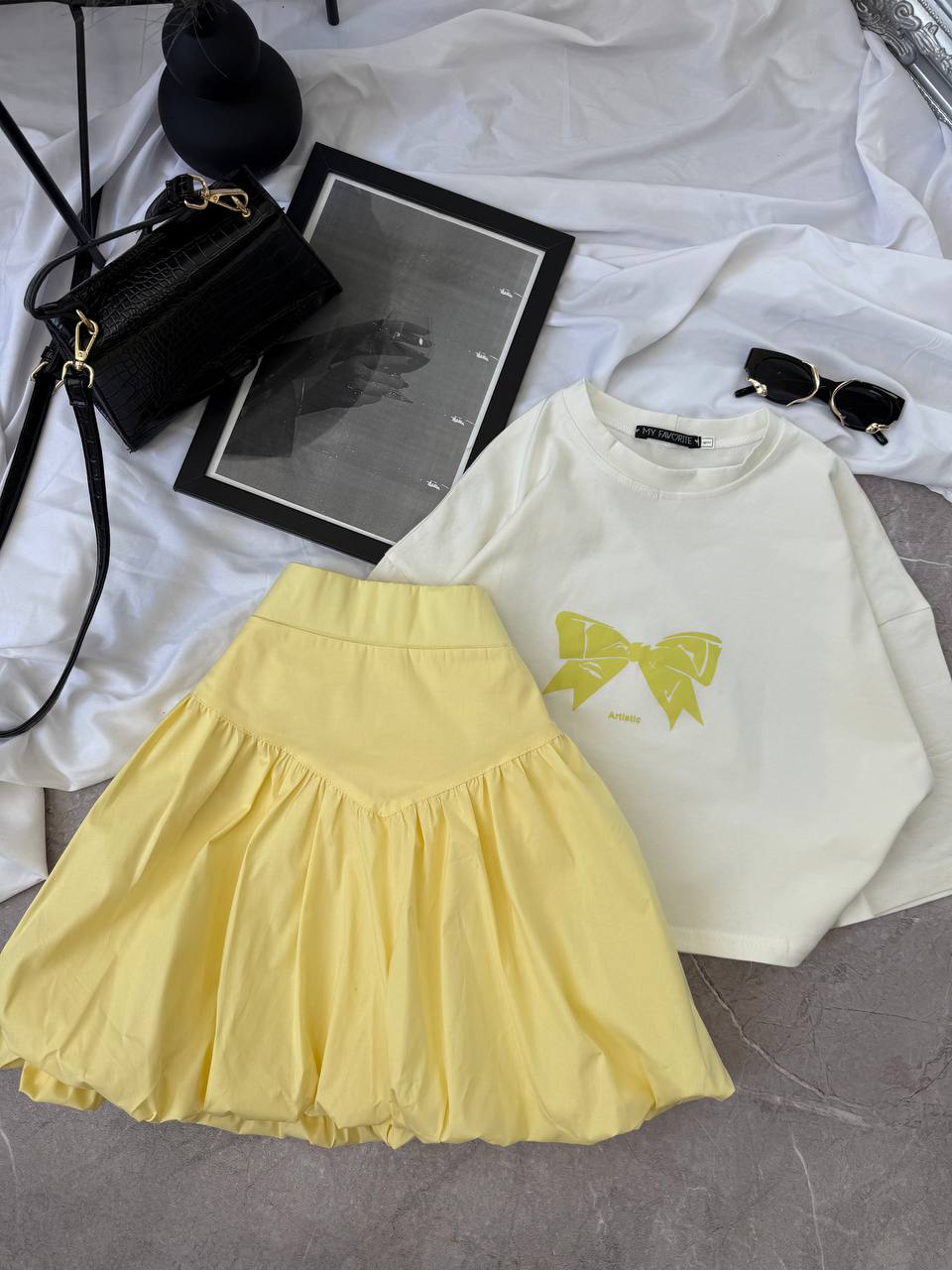 Будьте першим, хто залишив відгук “Костюм 2-ка: футболка с накатом+юбка сзади на резинке нежно-желтый”“