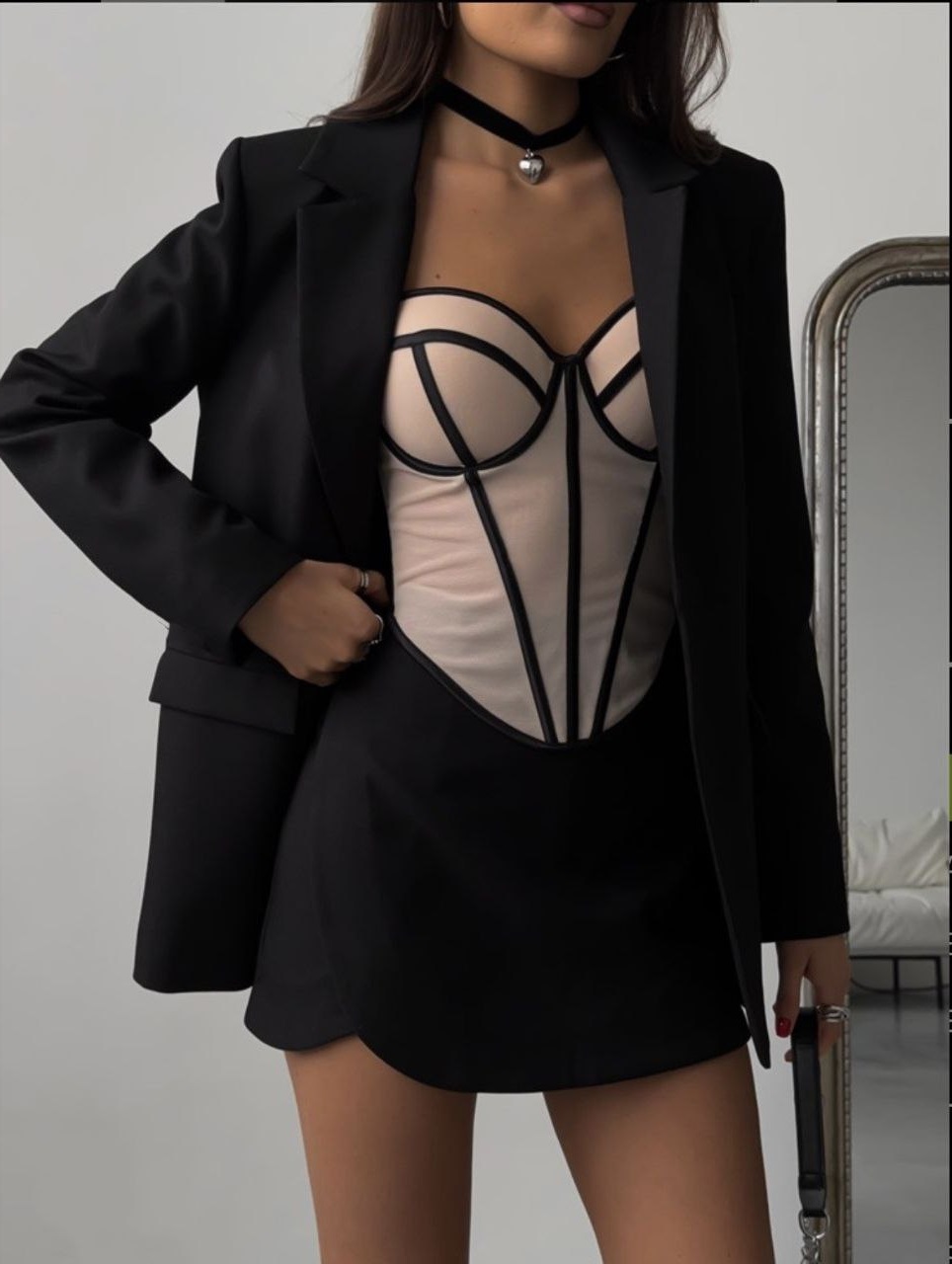 Костюм 2-ка Пиджак без подкладки + Юбка-шорты черный